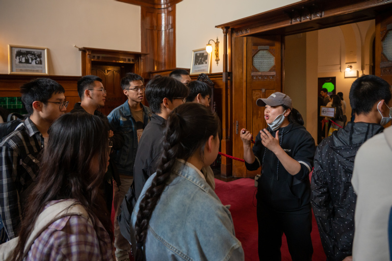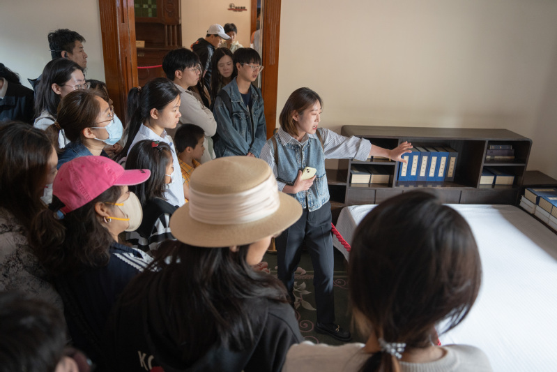 同学们了解到,这座建筑不仅见证了德国殖民统治时期的历史,还经历了日本占领、民国时期和新中国成立的各个历史阶段。1957年夏,毛泽东主席曾在此下榻并写成《一九五七年夏季的形势》一文,还在被称为金色大厅的大接待室主持召开了中共中央政治局会议。发展对象李泓先感叹道:站在这个曾经见证过如此多重大历史事件的建筑里,我仿佛能听到历史的回声,感受到时代变迁的脉搏。