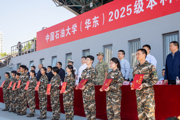 【本站讯】9 月 20 日,我校 2025 级学生军训总结表彰大会在学校体育场盛大举行。学校党委书记吴强明,副校长周鹏,党委副书记马国顺,党委常委、宣传部部长赵放辉,中国人民解放军海军某部队上校赵刚,军训旅旅长、中国人民解放军海军某部队少校王冰,国防教育工作领导小组成员以及各院部负责人出席典礼。吴强明向中国人民解放军海军某部队赠送锦旗。石工学院 2025 级全体参训学子以饱满状态全程参与,展现出独特的学院风采。