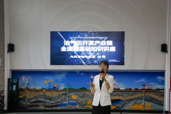 【本站讯】为助力我院2025级本科新生深入了解石油工业发展史,学院特邀来自大庆石油科技馆的首席讲解员刘阳在工科B座大厅为同学们带来“油气田开发产业链全流程基础知识”讲座。