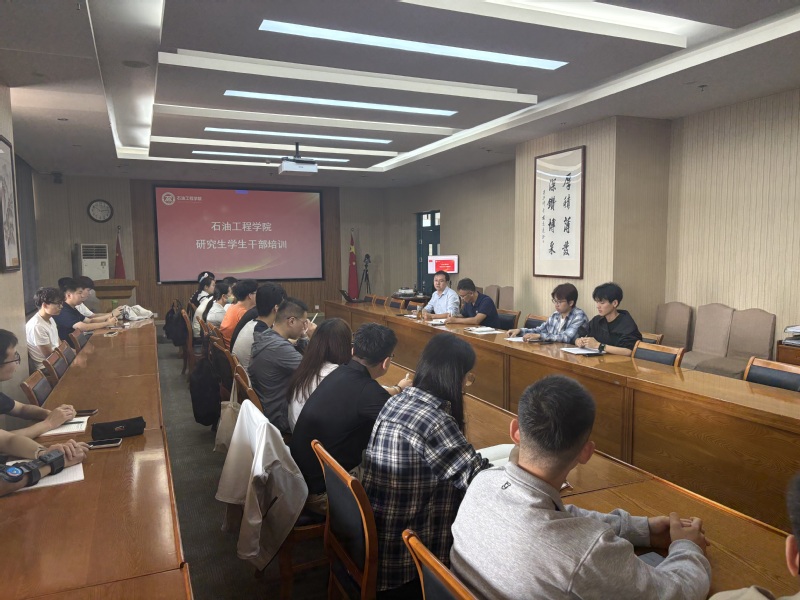 【本站讯】 2025年9月25日上午,石油工程学院2025级研究生学生干部培训在工科楼B座347会议室举行。培训会由辅导员于浩然老师主持,辅导员卢虎胜、周晓东主讲,2025级全体研究生班长、团支书及研究生会骨干参加培训。