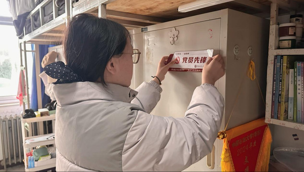 2023级辅导员、2023级本科生党支部书记张家馨为党员宿舍挂牌