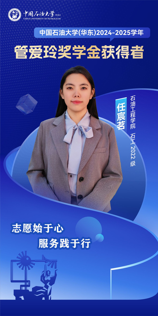 【本站讯】近日,2025年“管爱玲奖学金”评审结果公示,经线上评审、面试考察等环节,我院石油工程专业石工(卓越)2205班任宸茗同学获评该项奖学金。