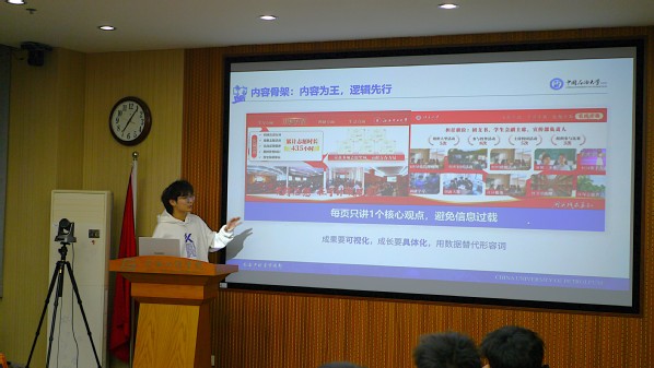 此次专项课堂的开展,有效弥补了参会学生在PPT制作与答辩技巧方面的能力短板,为答辩汇报提供针对性指导,也为参会学生后续参与学术答辩、工作汇报等各类展示活动积累实用经验,切实彰显了我院学生会重视学生培养、助力能力进阶的务实作风。(摄影:胡博渊)