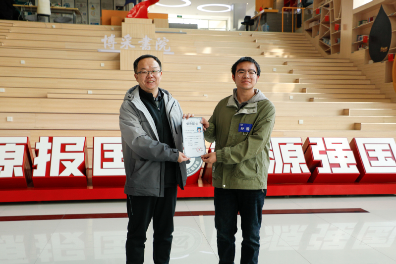 马梦华宣读碳中和奖学金获奖名单,充分肯定了同学们过往的努力,勉励同学们珍惜平台、勤学笃行,以更扎实的学术积累和更昂扬的精神状态投身科研。随后,获奖同学依次登台,与会领导为他们颁发获奖证书并合影留念。