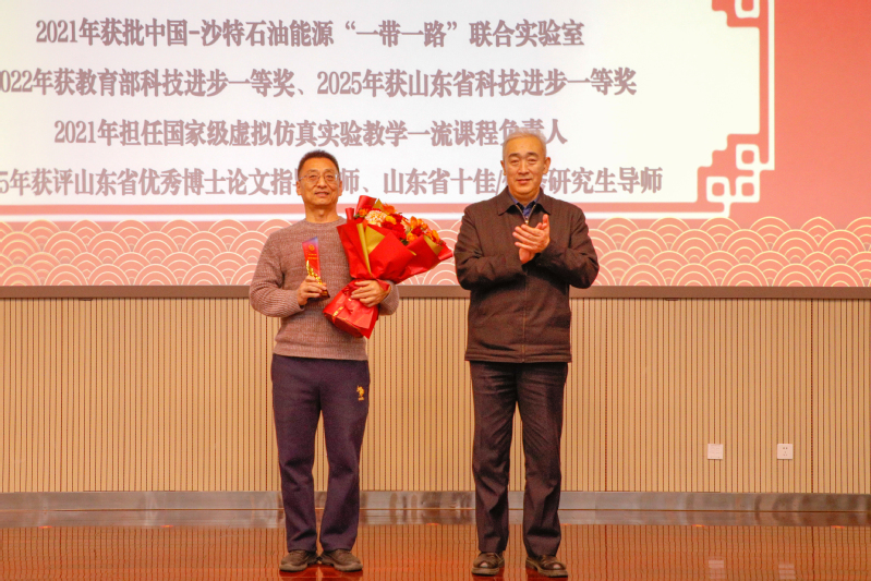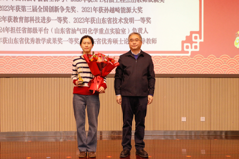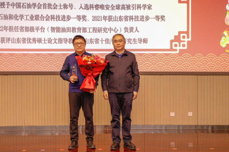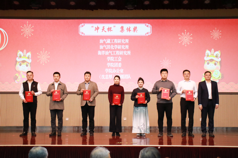 副院长张黎明宣读表彰文件,授予孙金声院士特殊贡献奖,授予管志川教授、姚军教授、孙宝江教授、戴彩丽教授、赵放辉部长、张凯教授杰出贡献奖,授予王业飞等44人突出贡献奖,授予丁名臣等88人贡献奖,授予油气藏工程研究所等7个集体“冲天杯”集体奖,特邀嘉宾依次为获奖者颁奖。