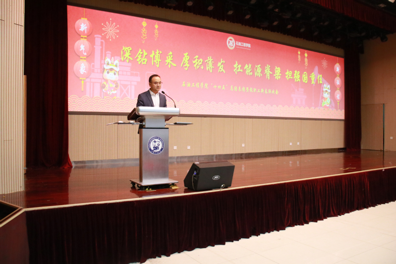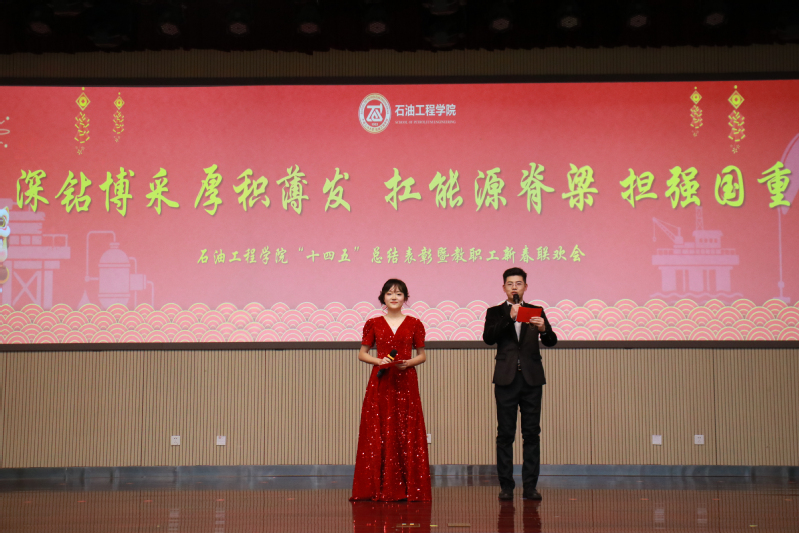 【本站讯】凝心聚力绘蓝图,奋楫扬帆启新程。1月8日,石油工程学院“十四五”总结表彰暨教职工新春联欢会隆重举行,会议主题为“深钻博采,厚积薄发,扛能源脊梁,担强国重任”。学校党委常委、宣传部部长赵放辉,特邀嘉宾、学院领导班子成员、全体教职工和学生代表等180余人欢聚一堂,共同回顾五年奋斗历程,迎接新春展望未来。学院党委副书记李兆爱主持总结表彰大会。