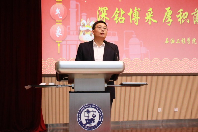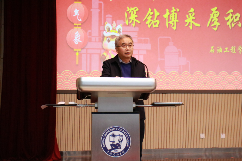 学院党委书记王志远代表学院向全体教职工和广大院友致以诚挚感谢和崇高敬意,回顾了“十四五”期间学院取得的丰硕成果,并向关心支持学院发展的领导老师致以新春的祝福。王志远指出,五年来,学院坚持以建设“特色鲜明、世界一流”学科为核心,深入实施“学术立院、人才强院、文化兴院”战略,在党建统领、立德树人、人才队伍建设和有组织科研等方面实现重大突破。其中,学院党委获评“全国先进基层党组织”,成功入选全国首批立德树人机制综合改革试点院系;石油工程专业核心课程教师团队入选“全国高校黄大年式教师团队”,国家级人才数量实现倍增;获批深层油气全国重点实验室等国家级平台,承担学校首个基础科学中心项目,科研创新实力显著提升。