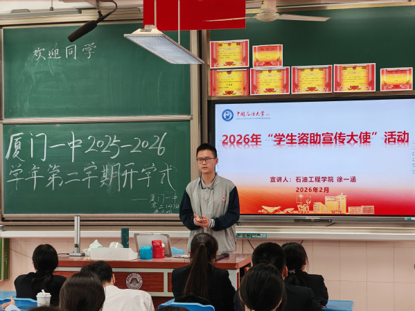 为深入落实国家资助政策宣传工作,充分发挥获奖学生的榜样引领作用,石油工程学院于2026年聘任39名本科生国家奖学金及山东省政府奖学金获得者担任“学生资助宣传大使”。宣传大使以个人实践与团队协作相结合的方式,积极联络高中母校,深入街道社区,将资助政策宣传延伸至基层一线。