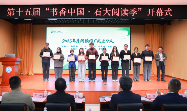 【本站讯】近日,第十“书香中国·石大阅读季”开幕式圆满召开院获评2025年年度阅读推广先进单位”,博采书院·悦读市集获评2025年度优秀阅读推广项目学生林倩宇获评2025年度阅读推广先进个人名单。